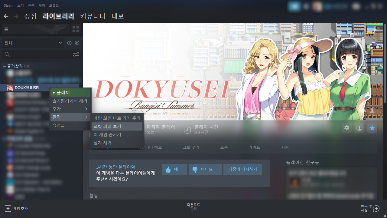 1. 먼저 Steam에 동급생과 R18패치가 된 상태에서 Steam 동급생이 설치된 폴더를 엽니다